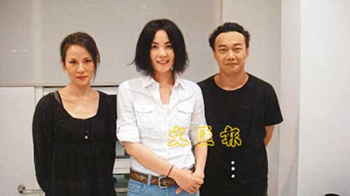 王菲(中)與楊乃文及Eason在央視合唱一曲《但愿人長久》。