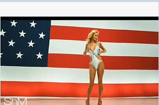 在《帕麗斯選總統》的MV里,帕麗斯身穿泳裝,背景則是美國星條旗。