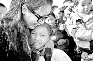 孫悅幫孩子們擦干眼淚,叮囑他們好好學習,并且承諾,等音樂教室建成后,她會再來學校給孩子們上音樂課。文/記者壽鵬寰