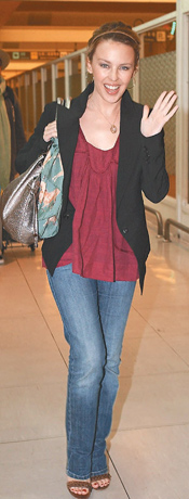 凱莉身穿黑色西裝、紫紅色上衣、牛仔褲,輕便俏麗,襯著歌迷“Can't Get You Out of My Head”的歌聲,她在自己請的一名女性保鏢、主辦單位請的10名保全護衛下離開機場,面對大批攝影記者幾乎貼近她臉的鏡頭,未顯任何不悅。