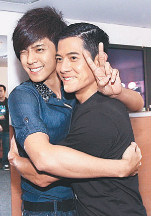 中新網12月19日電 臺灣“聯合報”報道,郭富城臺北演唱會圓滿落幕,在事后的慶功宴上,“小豬”羅志祥得以與“舞王”擁抱,他情不自禁做出勝利手勢。