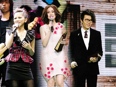 在最后落幕的十大中文金曲頒獎(jiǎng)禮上,陳奕迅和容祖兒因?yàn)樵谒膱鲱C獎(jiǎng)禮上所得獎(jiǎng)項(xiàng)總數(shù)不及新人謝安琪,所以被媒體稱為“落敗”。這一結(jié)果其實(shí)早在意料之中。2008年,陳奕迅和容祖兒均專心于個(gè)人演唱會(huì),新專輯中鮮有代表性作品,只能稱之為“發(fā)揮正常”。不過,在新生代尚未有足夠能力完全超越的2008年里,他們還能保持穩(wěn)定地位。