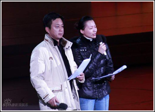 今年春晚主持人的出場方式與眾不同,記者在現(xiàn)場看到,開場歌舞《飛向春天》跳到一半時(shí),朱軍、董卿、李詠、周濤、張澤群、劉芳菲6位主持人“從天而降”,用特殊的方式給全國觀眾拜年。如果說往年“4+2”的主持人模式讓觀眾有些“審美疲勞”,那么白巖松、畢福劍的加入無疑增添了新看點(diǎn)。一貫嬉皮笑臉的畢福劍要介紹《星光大道》的年度總冠軍、盲人小伙楊光出場。平日里喜好板臉說事的白巖松要采訪王寶強(qiáng),引出《農(nóng)民工之歌》。不過,將在今年春晚上一人表演兩個(gè)節(jié)目的王寶強(qiáng)并沒有參加聯(lián)排。