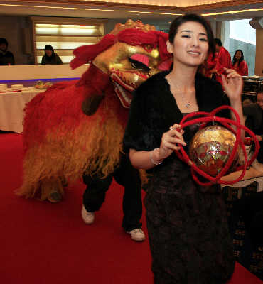 “2008新娛樂慈善群星會”將于3月1日在上海東方藝術中心舉行。昨天下午,主辦方SMG新娛樂在浦江游輪“君子蘭”號上舉行了隆重的“2008新娛樂慈善群星會”啟動發布會,為即將舉行的盛大頒獎活動拉開了序幕,F場,歌手何潤東和“小燕子”黃奕以一段熱鬧的舞獅出場,為活動預熱。