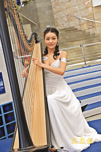 中新網7月18日電 據香港“文匯報”報道,昨日名模熊黛林化身成性感阿西娜女神,于“數碼港希臘節”開幕典禮上破天荒駕馭希臘戰車出場,現場香港小交響樂團首席豎琴手黃士倫和熊黛林并表演豎琴技藝。