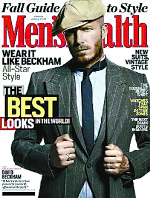 國際球星大衛·貝克漢姆成為最新一期《男士健康》(Men’s Health)雜志的封面人物(見上圖),他為該雜志拍攝了兩組不同的封面,分別為紳士型和運動型,并接受記者專訪,回答了四個問題。而不論是封面寫真還是回答記者的問題,這位33歲的萬人迷都散發著成熟男人的味道。