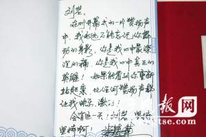 細心詢問病情,關心治療情況,三大導演在問候劉巖之后,不斷地勉勵這位著名的舞者增強與病魔作斗爭的信念。張藝謀還特別帶來了他在四張節目單和紀念冊上贈給劉巖的題字: