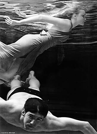 美國游泳天才菲爾普斯與名模卡羅琳·特提妮共同為某雜志拍攝了一組水中寫真。兩人在水里演繹浪漫情調(diào)。