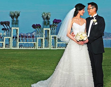 許晉亨和李嘉欣昨日完婚,一對新人穿上禮服行禮,十分匹配。