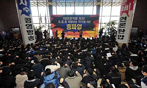 12月26日,MBC電視臺開始加入總罷工的行列。繼新聞節目《News Desk》主播樸惠珍罷工之后,主持人文智愛和孫正恩也相繼加入罷工行列。據悉,此次罷工的起因是韓國媒體工會為了反對韓國執政黨大國家黨正在推進的媒體相關法案修正案。