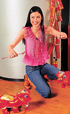 中新網2月1日電 香港媒體報道,樂基兒平時要兼顧模特兒工作及藝術課程,牛年伊始她專心一意享受農歷新年,在美國長大的她,對傳統習俗認識不多,拿著舞獅賀年飾物也表現得手忙腳亂,不好意思地狂笑。