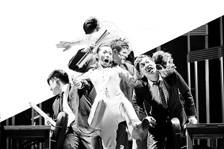 演員們除了臺詞對白,個個都還得客串“百老匯音樂劇演員”,一會兒推著辦公桌“噼里啪啦”跳起踢踏舞,一會兒高唱原創歌曲《Money,Money,Money》。更絕的是表現公司裝修的一幕,姚晨和一幫“裝修工人”揮著錘子、鏟子,直接就在一堆廢銅爛鐵上現場表演起打擊樂。