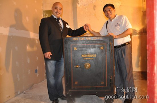 9月17日當地時間下午一點,甫抵達舊金山,訪問團在旅美陽和總會館主席盧偉棠、旅美人和會館主席彭書城、三邑總會館主席暨展圖等僑領的陪同下,馬不停蹄地拜訪了旅美人和會館、旅美陽和會館、五洲致公堂,與僑領座談交流,宣傳推介廣東華僑博物館,并考察會館建筑、歷史圖片和文獻。五洲致公堂總主席周國祥表示,今后要帶社團的年輕一代參觀廣東華僑博物館,學習了解華僑歷史,并希望該會收藏的孫中山先生當年在舊金山從事革命活動使用過的椅子、辦公臺和籌款用的保險柜、以及一些較有歷史價值的圖片、實物等可以在廣東華僑博物館展示。陽和總會館劉應同顧問當場捐贈了一張其父親珍藏1945年董必武隨聯合國代表團到訪舊金山的珍貴照片。其他僑領們紛紛表示,會積極協助廣東華僑博物館收集華僑實物和資料。