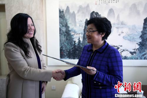 中新社北京10月25日電(記者 張冬冬)中國(guó)國(guó)務(wù)院僑辦主任李海峰25日在此間會(huì)見(jiàn)著名華人影星李小龍之女李香凝一行。李海峰稱(chēng)贊李小龍是華人的驕傲,不單是功夫明星,而且在多領(lǐng)域頗有造詣,在海外為華人樹(shù)立了良好形象。