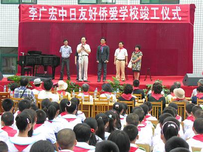 張繼勇在致辭中說,李廣宏先生情系四川、心系災區。去年“5.12” 汶川特大地震發生后,李廣宏率日本友人五次來川,多次為災區學生舉行演唱會,用歌聲撫慰災區學生受傷的心靈。后又拿出積蓄52.5萬元人民幣,在災區捐建“李廣宏中日友好僑愛學校綜合樓”。今天,在各方面共同努力下,綜合教學樓終于建成了,我代表省僑辦對此表示熱烈祝賀,對李廣宏先生及日本友人的到來表示熱烈歡迎和衷心感謝。他希望學校師生搞好教學,發奮勤學,為實現四川省“兩個加快”努力工作,以優異成績迎接建國60周年到來。