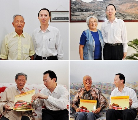 董中原每到一戶都詳細了解老同志的身體情況、家庭生活情況,與老同志一起回憶新中國成立60年來特別是改革開放30年來取得的輝煌成就和老同志個人走上革命道路的歷程。對老同志離休后仍一如繼往地關心僑聯事業發展表示感謝,同時祝愿老同志保重身體,健康長壽。
