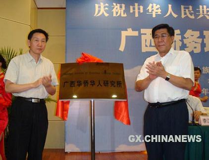 廣西僑務(wù)理論研究的重要基地——廣西華僑華人研究所9月24日在南寧掛牌成立,廣西壯族自治區(qū)政協(xié)副主席梁春祿、國務(wù)院僑辦政策法規(guī)司副司長范如松為研究所揭牌,廣西壯族自治區(qū)僑辦主任李漢金、廣西社會科學院院長呂余生等出席活動。此為廣西自治區(qū)僑辦充分利用廣西社科院東南亞研究所的資源和力量,發(fā)展廣西的僑務(wù)理論尤其是對華僑華人研究工作的重要舉措。
