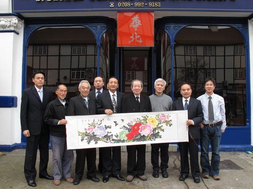 訪問團抵達倫敦時,英國京菜同業協會(山東省同鄉聯誼會)副會長王文興到機場迎接。訪問團看望了山東籍老僑領,與京菜同業協會(山東省同鄉聯誼會)進行了座談,并向協會贈送了紀念品。(山東省僑辦)