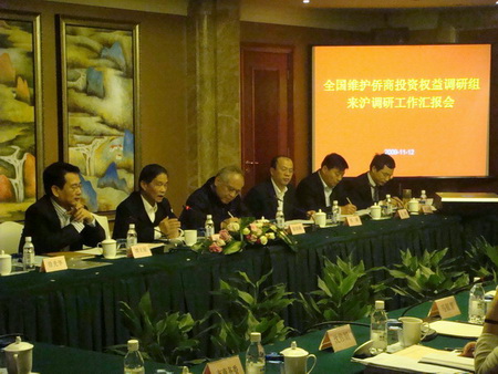 12日下午,上海維護(hù)僑商投資權(quán)益聯(lián)合調(diào)研工作匯報(bào)會(huì)和僑商座談會(huì)在上海衡山賓館召開(kāi)。上海市僑辦主任崔明華向調(diào)研組匯報(bào)了上海維護(hù)僑商權(quán)益工作的基本情況、基本做法、主要體會(huì)和工作建議。上海“五僑”及相關(guān)委辦局的負(fù)責(zé)人參加匯報(bào)會(huì)并介紹上海各部門(mén)維護(hù)僑商權(quán)益工作情況。