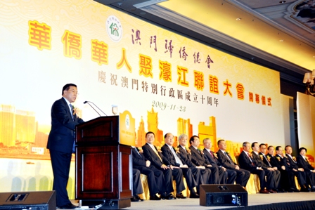 中新網(wǎng)11月25日電 據(jù)中國僑聯(lián)網(wǎng)站消息,11月23日至24日,由澳門歸僑總會(huì)主辦的“2009華僑華人聚濠江聯(lián)誼大會(huì)”在澳門舉行。中國僑聯(lián)主席林軍,國務(wù)院僑辦副主任許又聲以及來自世界56個(gè)國家和地區(qū)的華僑華人代表以及內(nèi)地僑界嘉賓共1000多人應(yīng)邀出席。澳門特別行政區(qū)行政長官何厚鏵到會(huì)講話,中央人民政府駐澳門聯(lián)絡(luò)辦副主任徐澤、外交部駐澳門特派員盧樹民等到會(huì)祝賀。
