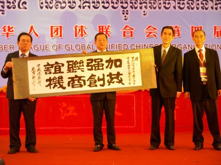 會議期間,中國僑聯(lián)代表團與中國駐柬埔寨大使張金鳳及柬華理事會會長、籌委會主席楊啟秋,柬華人參議員劉明勤、徐光秀,洪森總理顧問方僑生等著名僑領(lǐng)進行座談。代表團利用這個機會向僑胞們介紹了中國僑聯(lián)的立會宗旨、組織情況和工作內(nèi)容,并表達了要加強與柬華社會聯(lián)系、更好為僑胞服務(wù)的愿望。