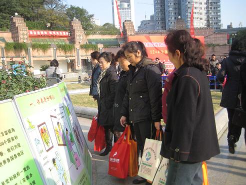 此次活動(dòng)的主題為“加強(qiáng)法制宣傳教育,服務(wù)經(jīng)濟(jì)科學(xué)發(fā)展”。溫州市僑辦副主任周海平和僑政處工作人員一大早就來到廣場(chǎng),擺放好宣傳圖板以及宣傳資料。在工作人員的積極宣傳下,前來咨詢涉僑法律法規(guī)的群眾積極踴躍,咨詢內(nèi)容包括房屋拆遷、回國(guó)定居、子女就讀及華僑參加社會(huì)養(yǎng)老保險(xiǎn)等方面問題。據(jù)統(tǒng)計(jì),4日上午共發(fā)放《涉僑法規(guī)文件精選》、《涉僑法律法規(guī)選編》等宣傳小冊(cè)子370多份。