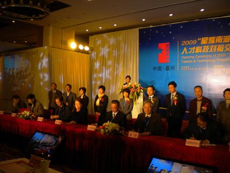 中新網(wǎng)12月9日電 據(jù)浙江僑聯(lián)網(wǎng)消息,12月4日至6日,浙江省嘉興市舉行2009“星耀南湖”人才科技對(duì)接交流會(huì)。為貫徹落實(shí)浙江省委“兩創(chuàng)”總戰(zhàn)略和支持嘉興市引資引智工作,浙江省僑聯(lián)發(fā)揮人才集聚的優(yōu)勢(shì),組織30余位高層次海歸人士赴嘉興考察參觀,并進(jìn)行項(xiàng)目對(duì)接。浙江省僑聯(lián)主席吳晶赴嘉興,出席了2009“星耀南湖”人才科技對(duì)接交流會(huì)開幕式。