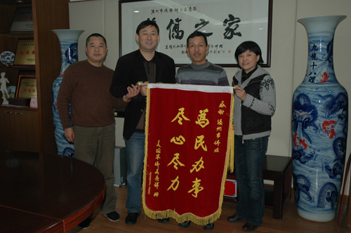 中新網12月11日電 據溫州僑網消息,12月11日上午,美國華僑吳秀祥來到浙江省溫州市僑辦,親手送上一面繡有“為民辦事,盡心盡力”的錦旗,以感激僑辦協助其解決了僑房拆遷糾紛難題。
