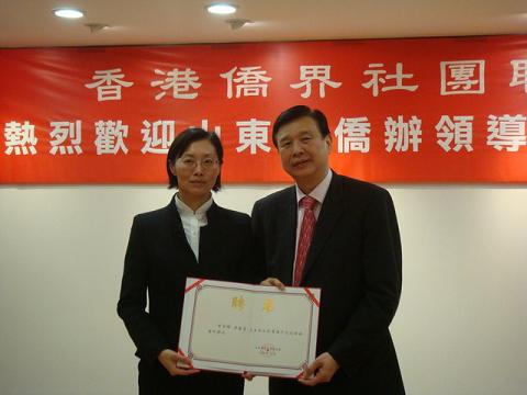 中新網12月23日電 據山東省僑辦消息,12月22日下午,山東僑務訪問團拜訪了香港僑界社團聯會,該會副會長王欽賢等20多位成員參加了座談。