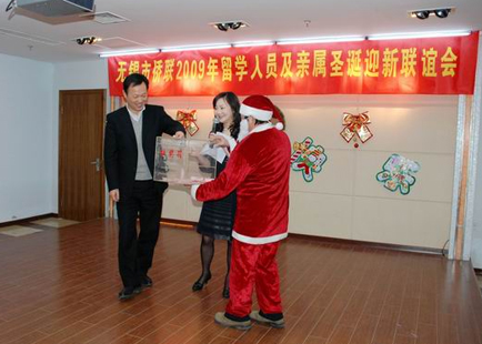 中新網(wǎng)12月25日電 據(jù)無錫市僑聯(lián)消息,12月20日下午,江蘇省無錫市僑聯(lián)、無錫市僑聯(lián)留學(xué)人員親屬聯(lián)誼會、無錫歸國留學(xué)人員創(chuàng)業(yè)商會在市華僑活動中心舉辦了2009年無錫留學(xué)人員及親屬圣誕迎新聯(lián)誼會。無錫市委常委、統(tǒng)戰(zhàn)部長周敏煒出席會議并講話。百余名在錫創(chuàng)業(yè)服務(wù)的歸國留學(xué)人員、部分留學(xué)人員家屬及市有關(guān)部門負(fù)責(zé)人參加了聯(lián)誼活動。