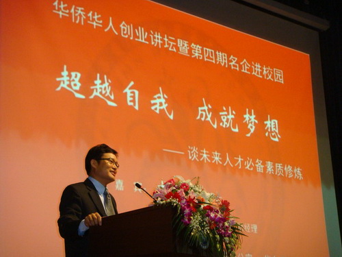 中新網(wǎng)12月30日電 據(jù)上海市僑辦消息,近日,由上海市僑辦與華東理工大學(xué)共同主辦的“華僑華人創(chuàng)業(yè)講壇”第三講在華東理工大學(xué)逸夫樓舉行。本次講壇特邀英特爾公司中國執(zhí)行董事、總經(jīng)理戈峻博士作主題為《超越自我,成就夢想――談未來人才必備素質(zhì)修煉》的精彩報告,并與華東理工大學(xué)師生互動交流。