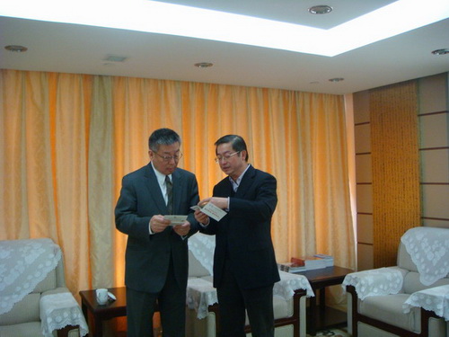 老朋友相見,格外高興。胡思源向崔明華介紹了紐約州立大學在08年8月支助150名大學生赴美學習的情況,以及此次帶領紐約州立大學校長老師和200位美國學生赴四川地震災區進行學習交流等情況。