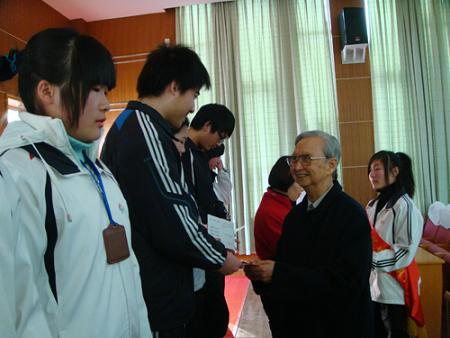 包景表先生親手將獎(jiǎng)學(xué)金交到學(xué)生手中,并鼓勵(lì)他們發(fā)奮努力,早日成才。獲獎(jiǎng)學(xué)生表示:不會(huì)辜負(fù)包先生的殷切期望,將會(huì)用自己的實(shí)際行動(dòng)立足專(zhuān)業(yè)、刻苦學(xué)習(xí)、面向社會(huì)、勵(lì)志成才、報(bào)效祖國(guó)。最后全體獲獎(jiǎng)學(xué)生和包先生合影留念。