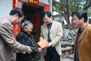 一來(lái)到仙游縣榜頭鎮(zhèn)印尼歸僑楊啟榮家,林澤春就帶領(lǐng)同行人員進(jìn)屋察看他家那原瀕臨倒塌的土墻,當(dāng)發(fā)現(xiàn)原來(lái)的那堵土墻已換成了磚墻時(shí),連聲說(shuō),改造成磚墻到下大雨時(shí)再也不用擔(dān)心墻倒下來(lái)了。當(dāng)細(xì)心的林澤春發(fā)現(xiàn)房間里很暗但沒有電燈,了解到因一人獨(dú)居沒有收入家中還沒通電時(shí),立即交待隨行的鎮(zhèn)黨委書記,要多多關(guān)心困難歸僑,臨近春節(jié)沒有電生活會(huì)極不方便。村主任解釋說(shuō),電工已來(lái)他家兩次,都沒遇到人,保證今天晚上通上電,另外老楊的最低生活保障也已報(bào)批。當(dāng)楊啟榮從林澤春手中接到慰問(wèn)金時(shí),感激之情不能言表。