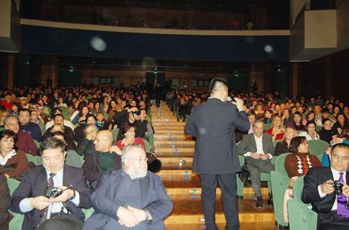 接著,由空軍政治部文工團組成的“親情中華”藝術團的藝術家們為大家表演了精彩的文娛節目,龐妮娜和楊帥表演的舞蹈令觀眾耳目一新,特別是他們所表現出來的扎實的基本功令在場的意大利觀眾驚嘆不已;當田毅走上觀眾席,“真朋友”的歌聲在每個人的身邊響起時,懂中文的觀眾向意大利友人傳遞著友情。梁召今獨唱的意大利語民歌“我的太陽”一曲震驚全場,掌聲如雷。