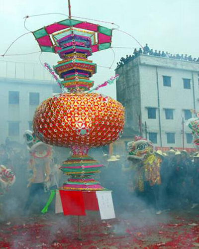 “泮村燈會”始于明朝英宗天頤八年(公元1464年,農歷甲申年)正月十三日,至今500多年。每年農歷正月十三,開平市水口鎮(zhèn)泮村舉行舞燈盛會,今年當地迎來了第十一屆舞燈盛會。當天上午,3個三米多高的大花燈,以羅傘彩旗開路,龍獅共舞,鞭炮齊鳴,巡游于泮村48條自然村,全過程包括扎燈、送燈、起燈、舞燈、打燈,故擇其名為“泮村燈會”。