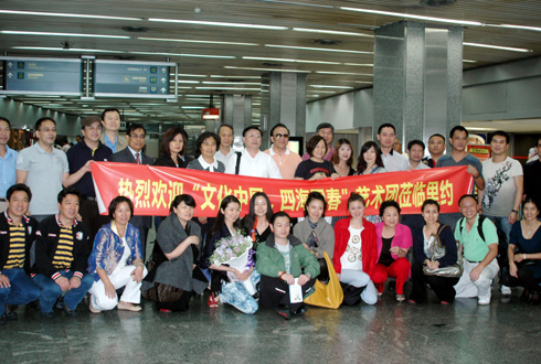 中新網(wǎng)3月5日電 據(jù)巴西《南美僑報》報道,“文化中國·四海同春”赴南美藝術(shù)團3日晚間平安抵達本次訪演的最后一個城市——巴西里約熱內(nèi)盧,在當(dāng)?shù)貒H機場受到了里約華僑華人的熱烈歡迎,國僑辦副主任馬儒沛和藝術(shù)團的演員們與僑胞們在機場合影留念。
