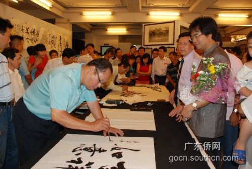 胡志明市華人書法協(xié)會(huì)會(huì)長(zhǎng)陳川先生在第5郡文化中心專門安排書法俱樂(lè)部成員與廣東禪武書法交流團(tuán)現(xiàn)場(chǎng)揮毫,互贈(zèng)作品,越中書畫家們?cè)谝还P一畫中展現(xiàn)越中友誼萬(wàn)古長(zhǎng)青。(小琴)