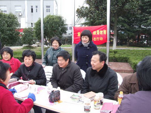 中新網(wǎng)3月10日電 據(jù)上海市僑辦消息,3月7日上午,上海市金山區(qū)僑辦、僑聯(lián)在朱涇鎮(zhèn)紫金廣場(chǎng)舉行“依法護(hù)僑,喜迎世博”僑法宣傳月主題活動(dòng)。