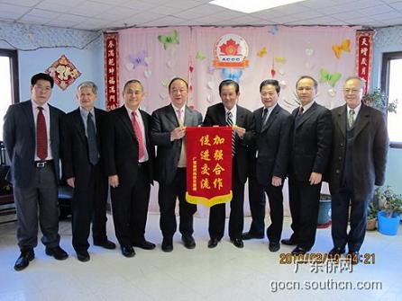 中新網3月12日電 據廣東僑網消息,3月9日下午,剛抵達加拿大滿地可的廣東省僑辦主任吳銳成,即率領訪問團深入僑社拜訪。僅僅半天時間,訪問團先后拜訪了滿地可中華文化宮、洪門民治黨滿地可分部、柬華會館、魁省潮州會館,與僑界各方人士進行了座談交流。晚上,出席了由滿地可華社舉辦的歡迎晚宴,有24個華人團體130名僑胞參加。