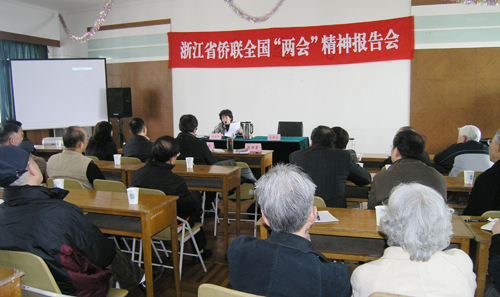 中新網(wǎng)3月22日電 據(jù)浙江省僑聯(lián)消息,3月19日,浙江省僑聯(lián)在華僑大樓“僑之家”舉辦全國“兩會”精神報告會,邀請浙江省僑界出席“兩會”的全國人大代表、浙江理工大學(xué)教授吳子嬰和全國政協(xié)委員、浙江省僑聯(lián)副主席、浙江華日集團董事長陳勵君作全國“兩會”精神報告。