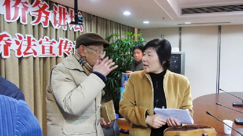 其中涉及的法規和政策都是與廣大歸僑僑眷切身利益密切相關的,在一個半小時的講座中,大家認真聽講,收獲良多。會后,王玲鼓勵每一位歸僑僑眷合法、合理地用好、維護好自己的權益,并且希望僑務干部們廣聽各方意見、積極建言獻策,為修訂、完善僑法出謀劃策。