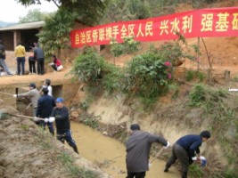這次冬修水利勞動,是廣西壯族自治區僑聯積極響應廣西壯族自治區黨委、自治區人民政府號召的一次主題實踐活動。當日,一到勞動現場,廣西僑聯主席韋干身先士卒,帶頭跳入2米深的水渠里,帶領大家迅速投入到勞動中去。工地上,廣西僑聯會旗和“自治區僑聯攜手全區人民興水利,強基礎,惠民生”橫幅迎風飄揚,大家情緒高漲,干勁十足,有的鏟淤泥、搬石塊,有的鋤雜草、修整渠面……,有人身上濺滿了泥漿也全然不顧。