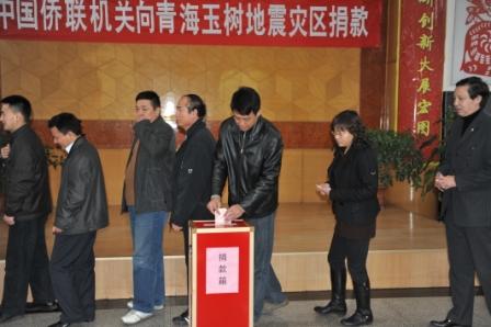 中國僑聯(lián)副主席李祖沛現(xiàn)場傳達了中共中央政治局委員、全國人大常委會副委員長王兆國對僑聯(lián)開展玉樹抗震救災(zāi)的指示精神和林軍對玉樹抗震救災(zāi)的批示精神,指出要把廣大歸僑僑眷和海外僑胞支援抗震救災(zāi)的熱情引導(dǎo)并融入黨政主導(dǎo)的抗震救災(zāi)行動中去,并號召機關(guān)廣大干部職工要大力發(fā)揚“一方有難、八方支援”的精神,心系災(zāi)區(qū)、情系災(zāi)民,以實際行動幫助災(zāi)區(qū)群眾渡過難關(guān)。隨后,舉行了中國僑聯(lián)機關(guān)向青海玉樹地震災(zāi)區(qū)捐款活動。中國僑聯(lián)黨組書記、主席林軍、副主席李祖沛、董中原、王永樂帶頭向災(zāi)區(qū)捐款,出差在外的副主席喬衛(wèi)也委托他人捐款。