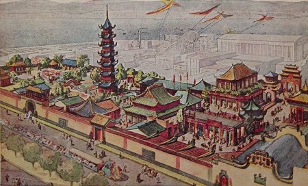 根據(jù)有關(guān)資料,“中國(guó)村”入口大門是一座巨大的牌坊,上面書寫著“華商展覽場(chǎng)”幾個(gè)大字。“中國(guó)村”內(nèi)設(shè)有兩個(gè)酒家、兩座戲院、一座神廟和一座七層高的佛塔。“佛塔是中國(guó)村內(nèi)最高建筑。”喬文安介紹,“中國(guó)村”內(nèi)還建了一個(gè)陳列館和一二十家商店,分別展出中國(guó)的各類民間工藝品、瓷器、茶葉,還有少量具備科技含量的產(chǎn)品。