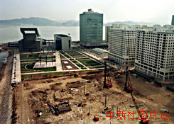 中葡雙方就澳門政權交接儀式的會場選址問題達成共識,會場將是建在澳門文化中心與東方文華店之間的臨時場館。圖為場地現狀。