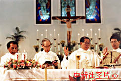 圖片說明: 澳門教區大主教林家駿(右二)主持圣誕子夜彌撒。