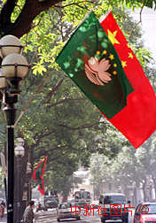廣州市一些主要道路兩旁已掛起國旗和澳門特別行政區區旗,喜迎澳門即將回歸祖國。