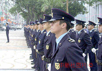 澳門警方儀仗隊為參加政權交接和回歸慶典的多項活動,加緊進行演練。