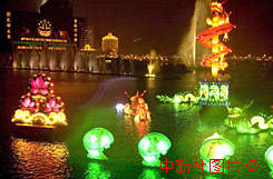中國著名的自貢"龍燈之鄉"特意為澳門南灣湖裝飾慶回歸大型燈展,十六日夜開始大放光彩。
